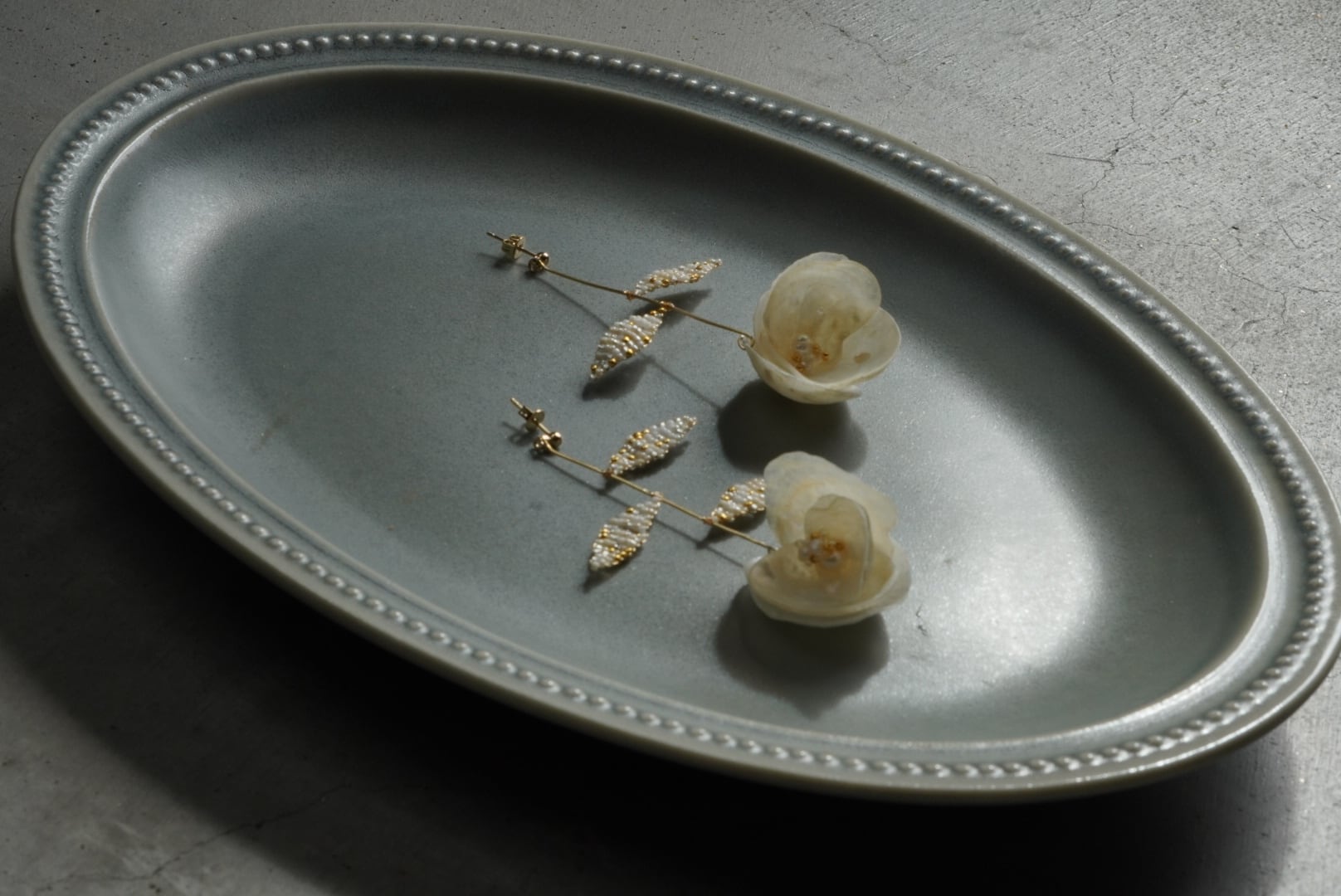 「貝殻とリーフの耳飾り」のお花が下に咲いたnewバージョン。