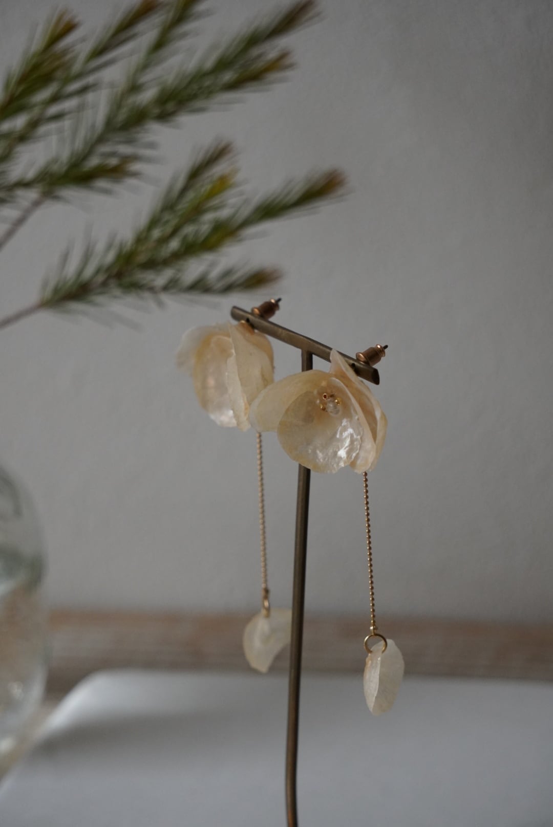 厳選した上質で美しい艶のある貝殻で仕上げた耳飾りです。