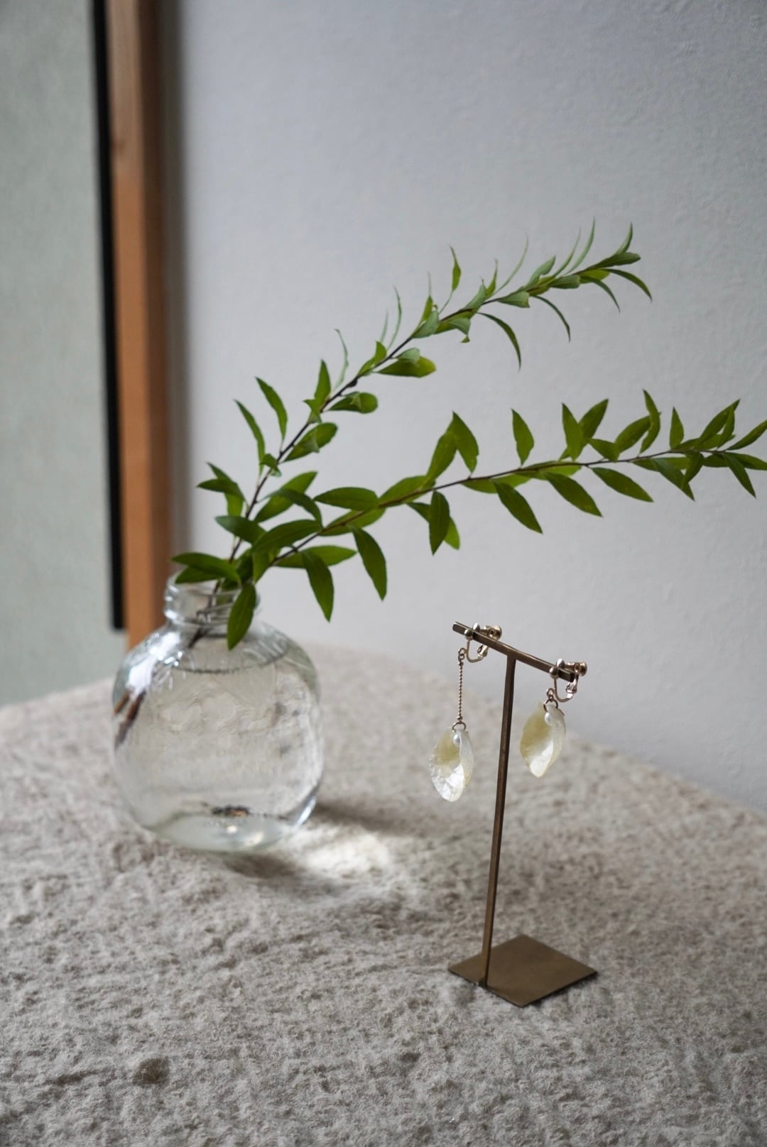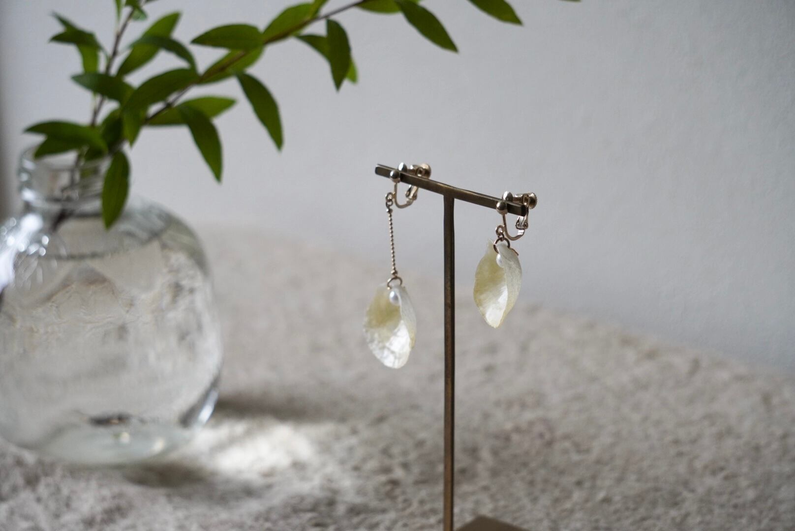 1枚の貝殻がアシンメトリーで揺るシンプルなデザインです。