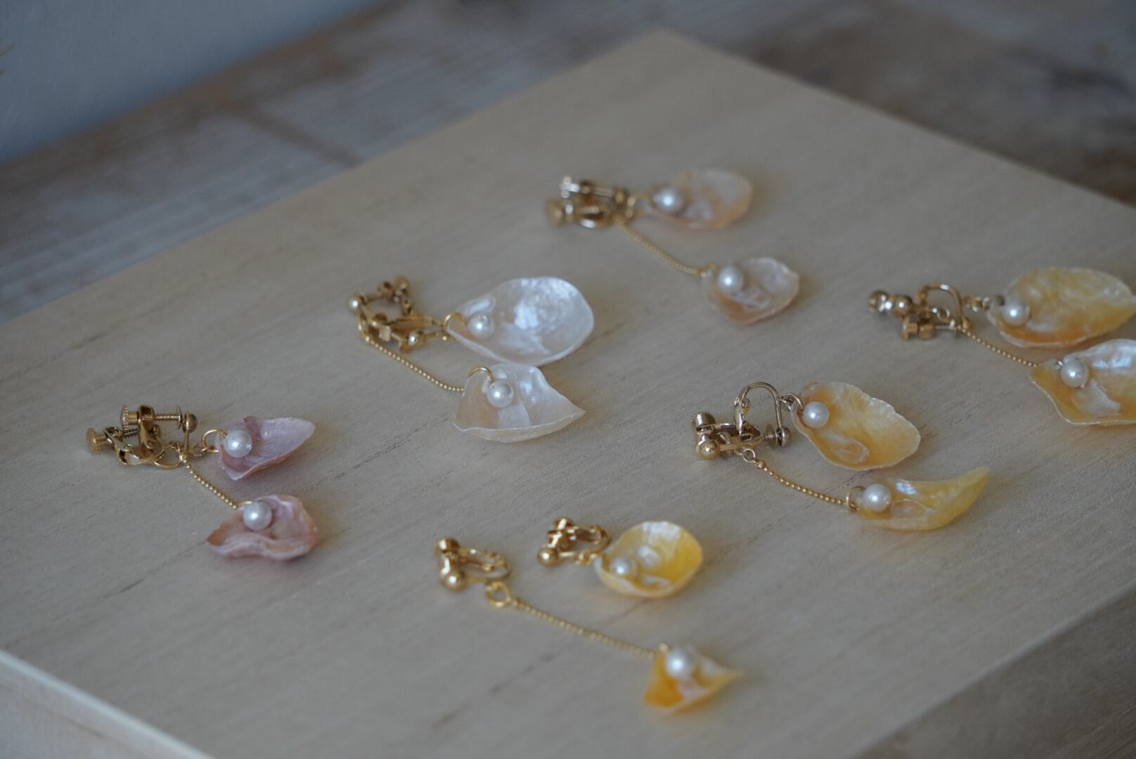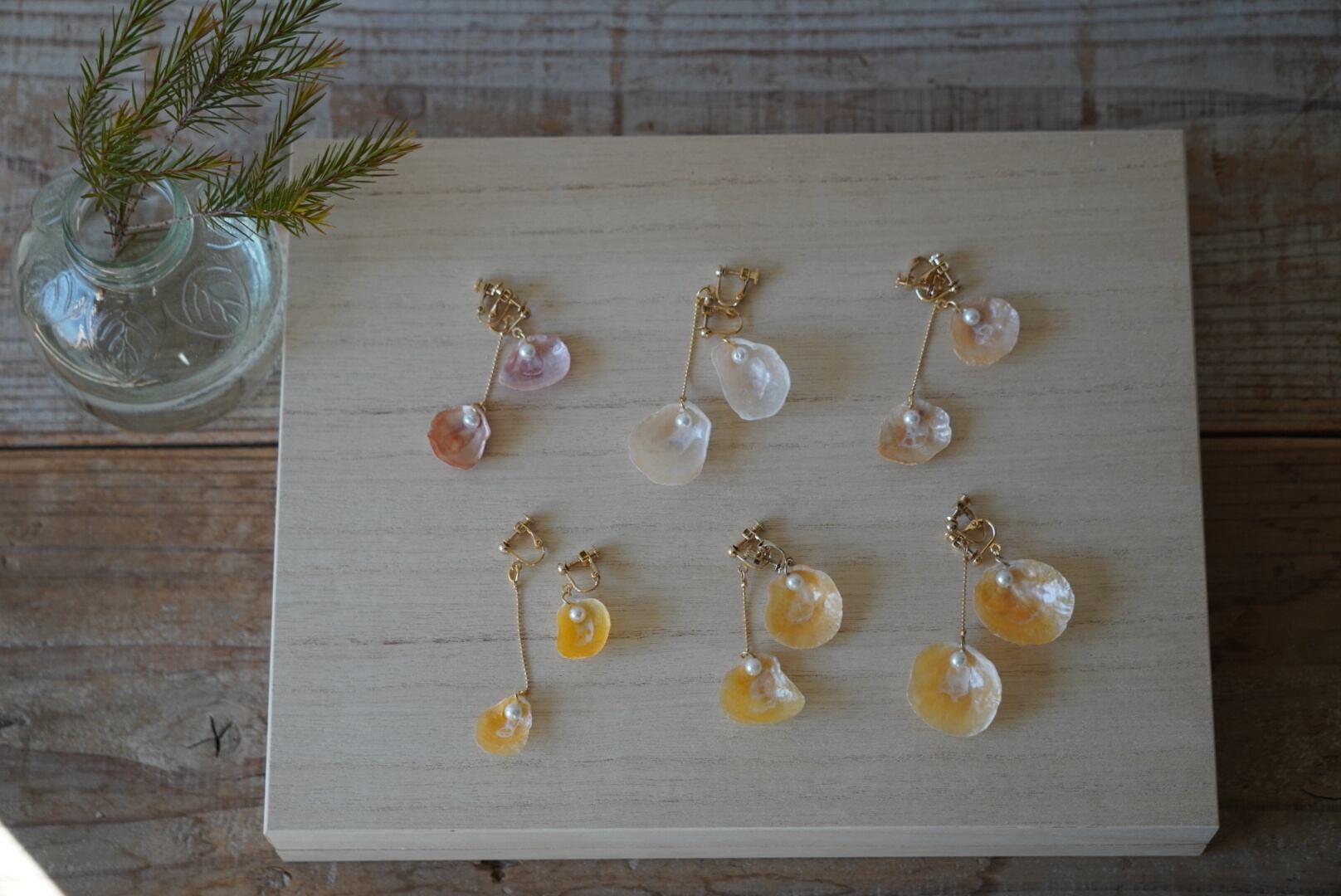 貝殻イヤリング アシンメトリー