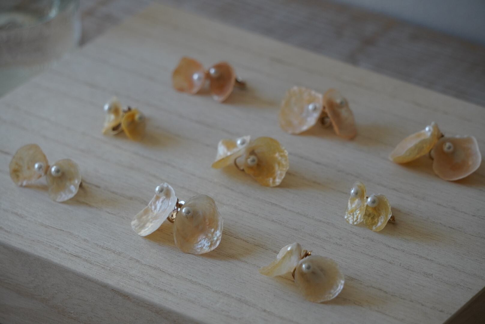 1枚の貝殻が耳にピタッとくっつくシンプルさを追求した上品なデザインです。